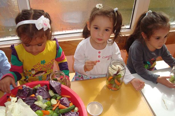 Turşu kurma çeşitli sebze ve meyvelerin salamura adı verilen tuzlu, asitli çözeltide bir süre bekletilerek uzun süre saklanabilecek hale getirilmesidir. İyi yapılmış bir turşuyu yemenin keyfine doyulmaz, ama turşuyu tutturması zordur. Su, tuz, sirke, şeker, limon gerekir ve bunların birbirine olan oranları da turşunun kalitesini belirler. Turşu yapmanın amacı, asitli bir ortam sağlayarak meyve ve sebzeleri korumaktır. Gülümse Yuva çocukları bu gün birlikte turşu yaptılar. Kavanozların içine turşuluk salatalık, biber ve havuçları doldurdular. Daha sonra turşunun suyunu ilave edip kapağını sıkıca kapattılar. Turşu kavanozlarının dışını güzelce süslediler. Çocuklarımız yaptıkları turşuların olmasını sabırsızlıkla bekleyecekler...