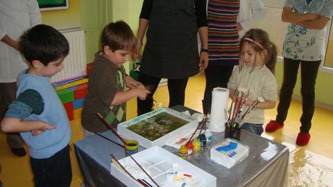 Müzik eşliğinde yapılan sanatsal çalışmada çocuklarımız boyalar ve renkler ile oynarken çok güzel eserler de ortaya çıkarabiliyorlar...